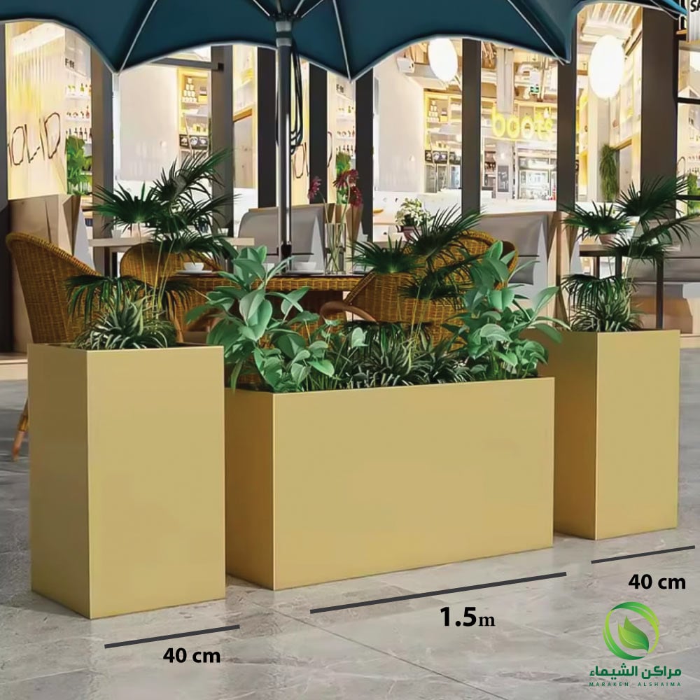 - المميزات: مثالية للمساحات الطويلة والضيقة، يمكن استخدامها على طول الجدران أو الأسوار، توفر مساحة كافية لنمو النباتات.
