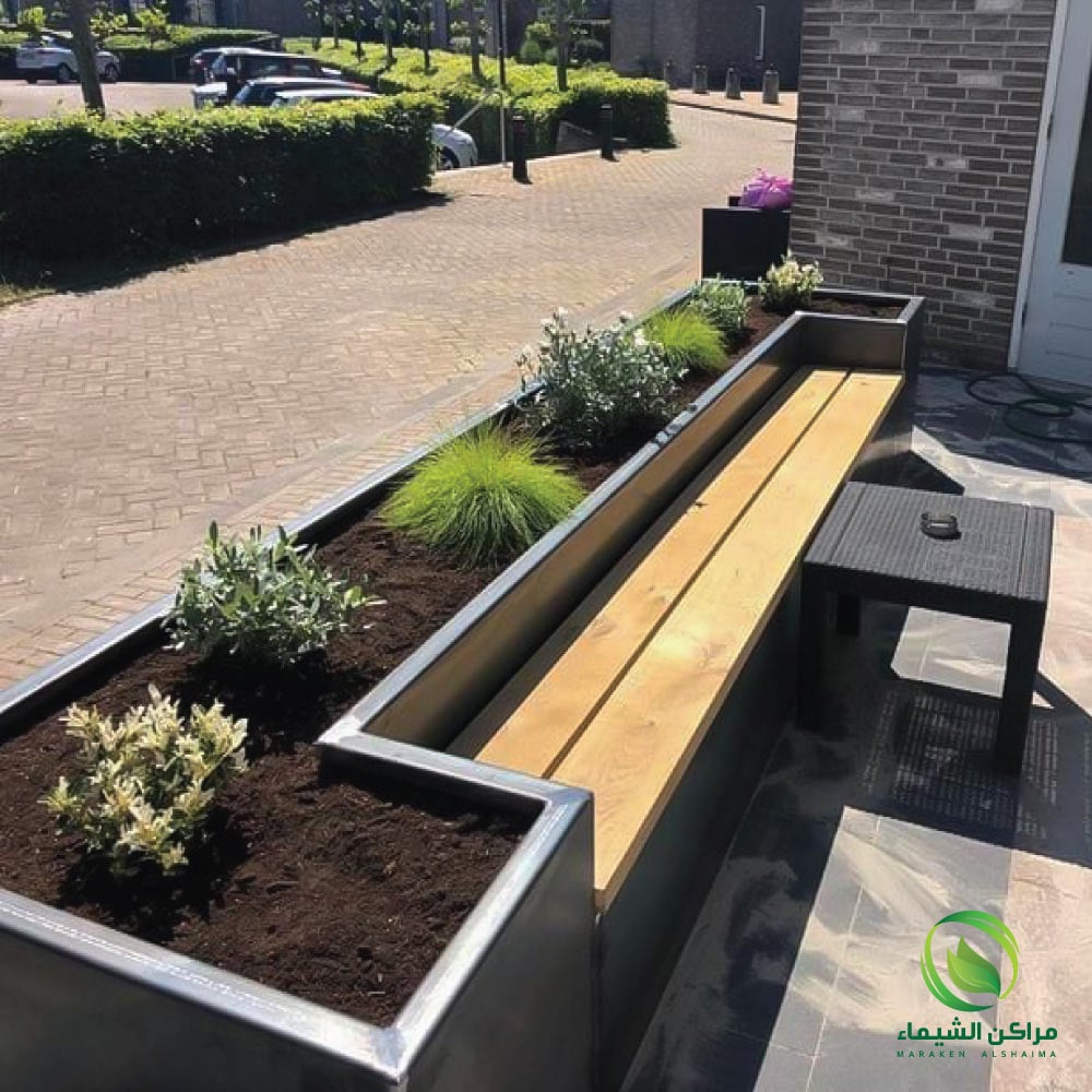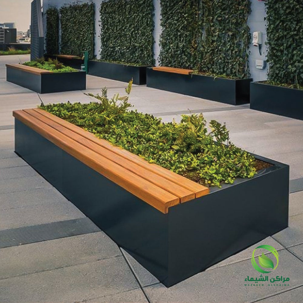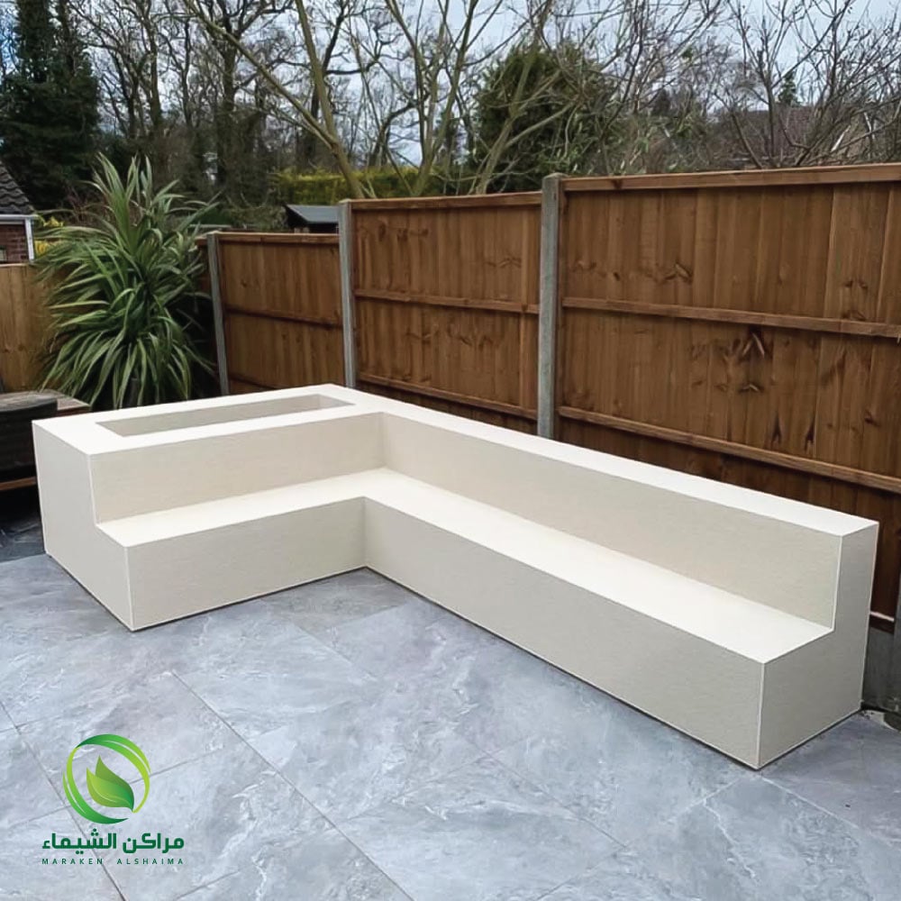 - جلسة فايبر جلاس مصممة مع فتحات لزراعة النباتات أو الزهور.