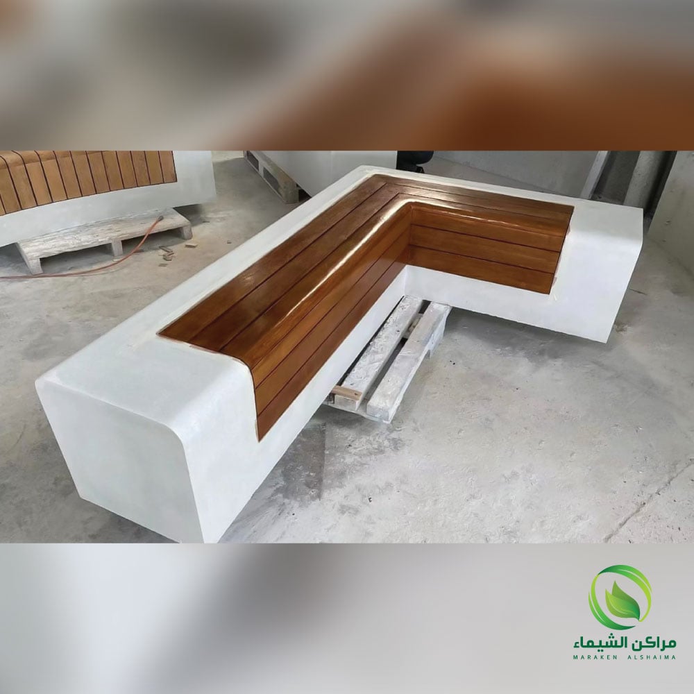 - جلسة فايبر جلاس بتصميم يحاكي الخشب أو الحجر، تعطي مظهرًا طبيعيًا مع متانة الفايبر جلاس.