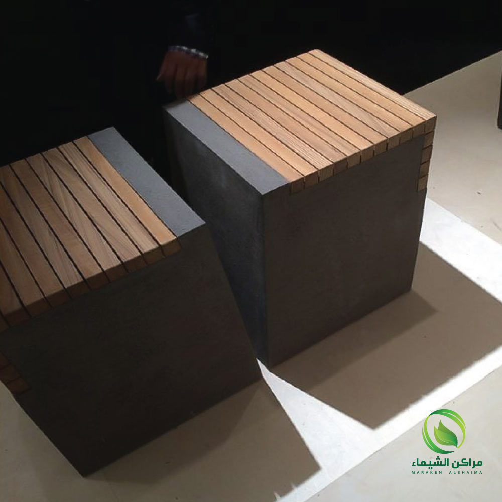 - **التصميم**: طاولات وكراسي من الخرسانة بتصاميم بسيطة.