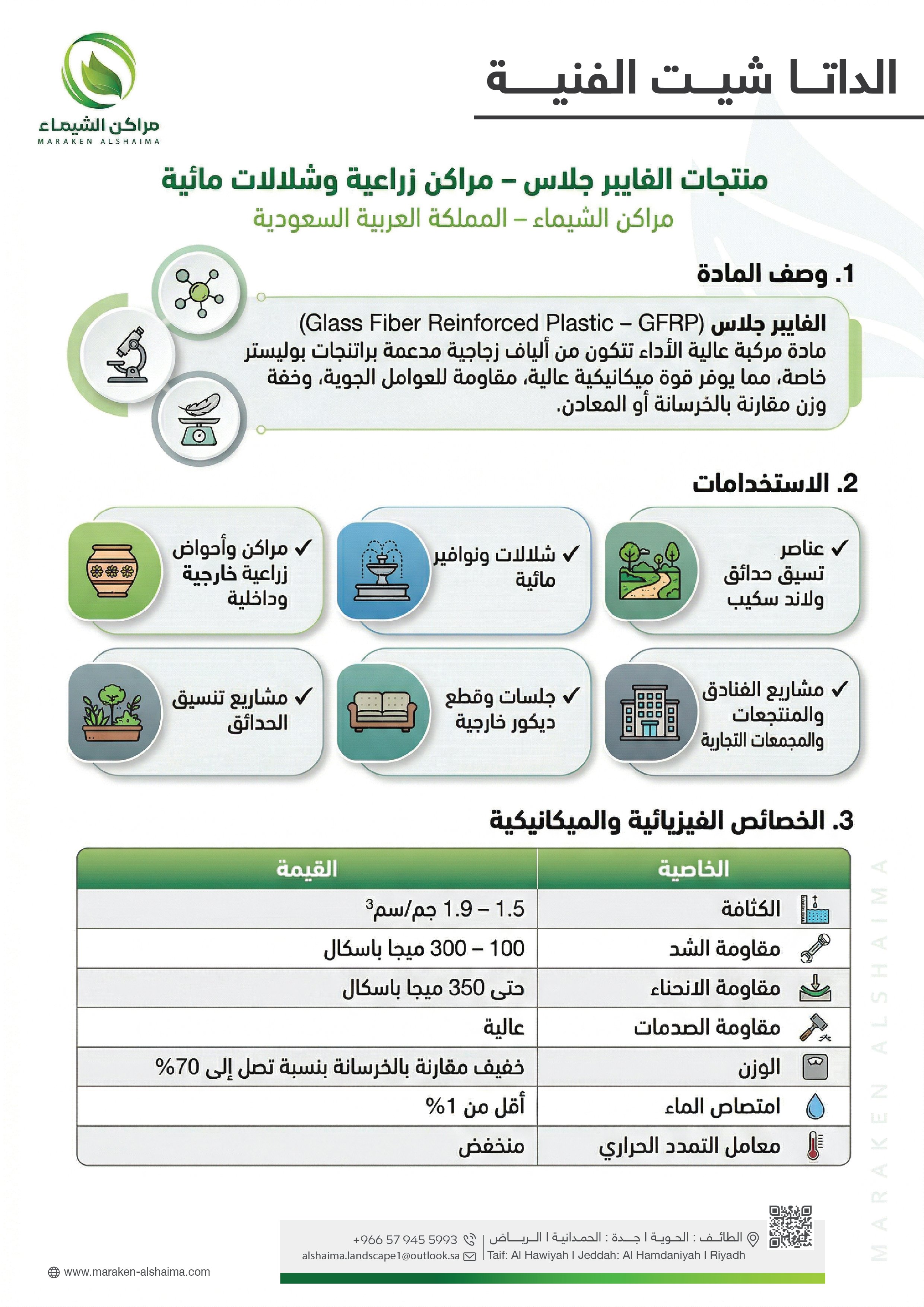 متجر مراكن الشيماء يعتبر واجهة مميزة ومتنوعة لشراء أحواض الزرع الكبيرة ، والمراكن والشلالات والنوافير الجاهزة بالإضافة إلى الجلسات الخارجية والطاولات المصنوعة من الفايبر جلاس عالي الجودة خامات ذات جودة عالمية ممتازة.